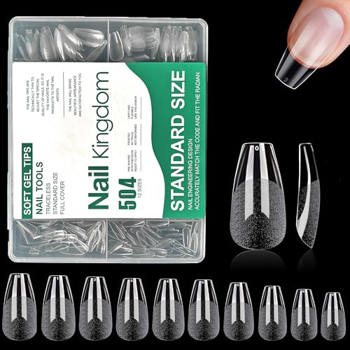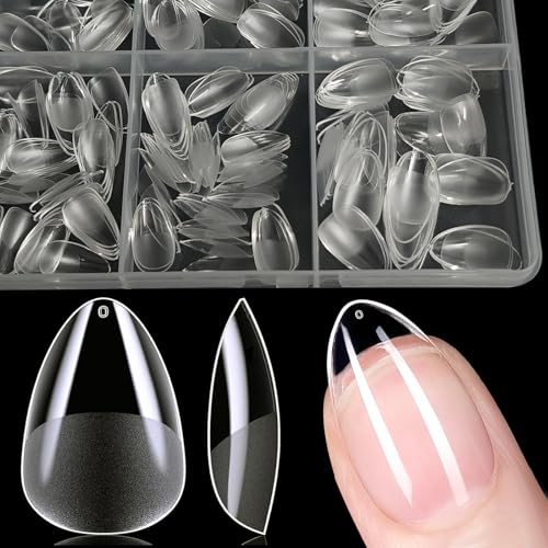 XIAOHEBAN 504st Nails Tips Medium Almond 12 Storlekar Tydliga, Tippar för Naglar, Nybörjare Och Nagelkonstsalonger, Nagelförlängningar, Heltäckande Spikspetsar, Naglar Tipar Medium Mandel