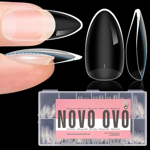 NOVO OVO Extra tjocka nagelspetsar att trycka, medium mandel mjuk gel nagelspetsar tjock, naturlig kurva, medium, fullständig täckning, konstgjorda naglar för akryl fransk 14 storlekar, 336 stycken