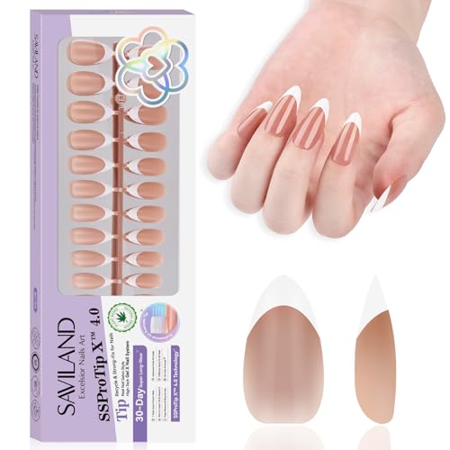SAVILAND Press On Nails Franskt tips: 4-i-1 fransk gel nageltips stam medium mandel fransk press på naglar 15 storlekar komplett täcktips för naglar blötläggning av akryl konstgjorda naglar