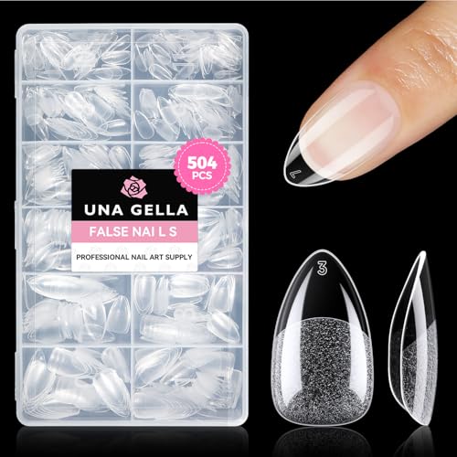 UNA GELLA Korta mandel nageltips, 504 stycken, press på konstgjorda naglar, förformade korta mandelgel, nagelspetsar för full täckning, akryl, mandel, konstgjorda naglar, tips för hem, gör-det-själv,