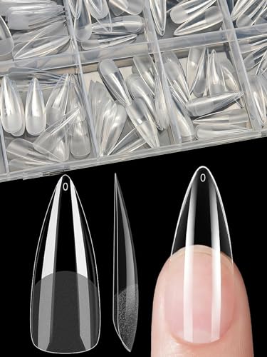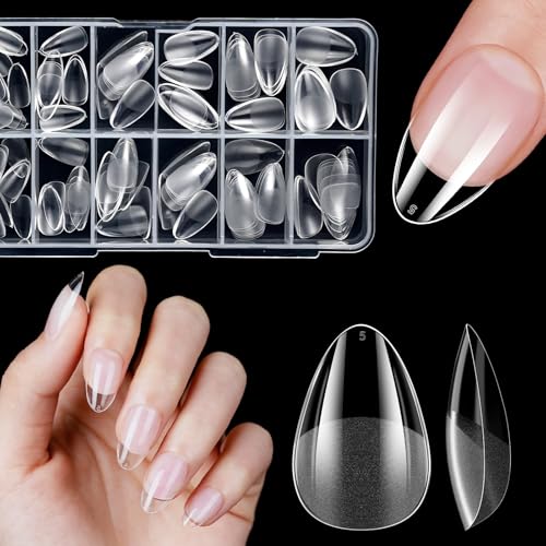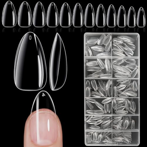 XIAOHEBAN Naglar Tipar, 240st Nails Tips Long Almond 12 Storlekar Tydliga, Tippar för Naglar, Nybörjare Och Nagelkonstsalonger, Nagelförlängningar, Heltäckande Spikspetsar, Långt Mandel