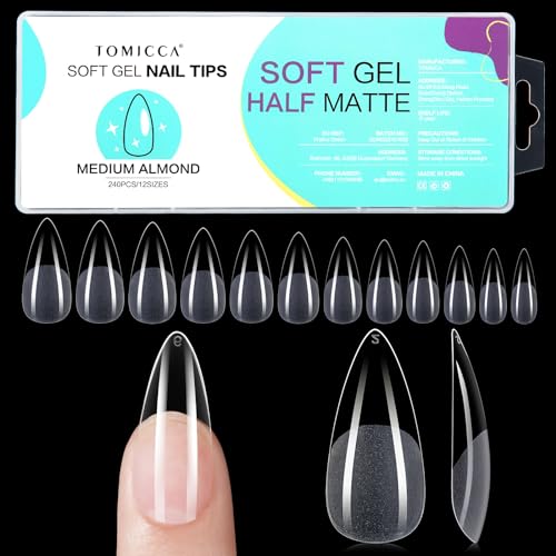 TOMICCA Mandel medium nageltipss-tips för gelnaglar, gel heltäckande nageltips, förformade halvmatt spetsar naglar gely nagelspetsar för akrylnaglar – 240 stycken 12 storlekar