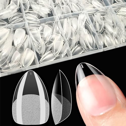 XIAOHEBAN Naglar Tipar, 600st Nails Tips Medium Almond 12 Storlekar Tydliga, Tippar för Naglar, Nybörjare Och Nagelkonstsalonger, Nagelförlängningar, Heltäckande Spikspetsar, Medium Mandel