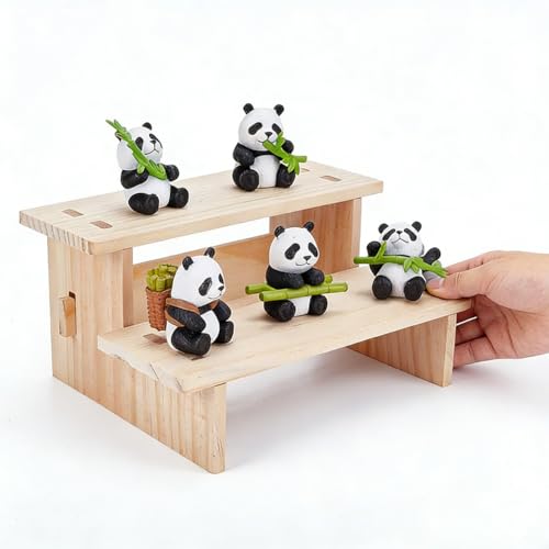NBEADS Visningshylla i trä med 2 nivåer, bordsdisplayställ för trämat, parfym, kosmetika, figursamling, blekt mandel, 19,7 x 15,9 x 9,3 cm
