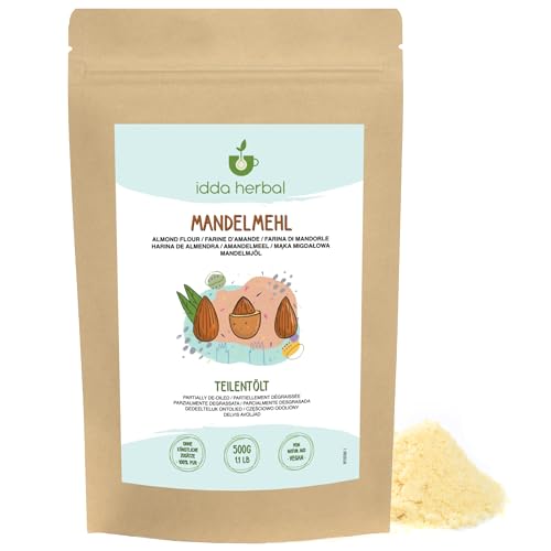 Mandelmjöl, Mandlar delvis oljade och malda, 100% naturliga, försiktigt torkade, naturligtvis utan tillsatser, Vegan, Mandelpulver (500 GR)