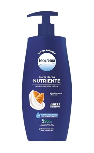 Leocrema - Närande kroppskräm, med mandelolja och panthenol, och Hydra 3 hudserum, fuktgivande i 72 timmar, snabb absorption, för torr hud, 500 ml