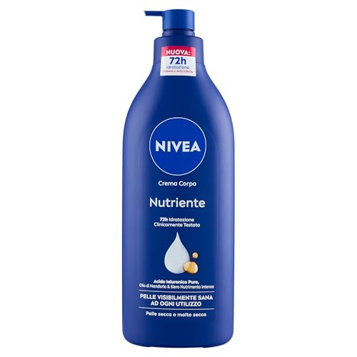 NIVEA Näringsrik kroppskräm 500 ml, 72h kroppsfuktighetskräm berikad med ren hyaluronsyra, mandelolja och serum intensiv näring, fuktgivande kroppskräm torr eller mycket torr hud
