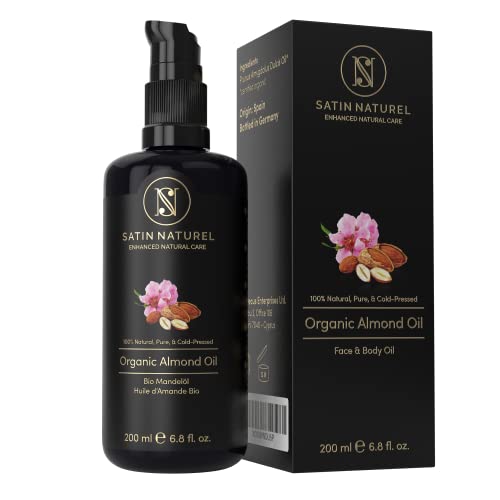 Organisk mandelolja vegan + kallpressad - 100% ren & naturlig - 200 glasflaska - hudvård rik på vitaminer för mjuk hud, hårvård och friska naglar - Natural Cosmetics av Satin Naturel