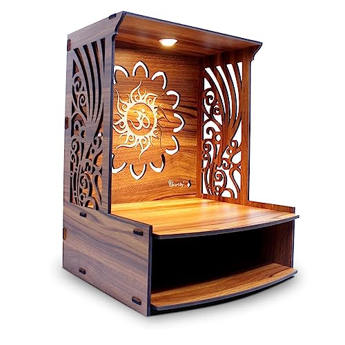Heartily® Aastha vacker träPooja Mandir för hem eller Puja-tempelstativ för kontor och butiker med LED-spotlight (H- 18, L- 16, W-8,75 tum)