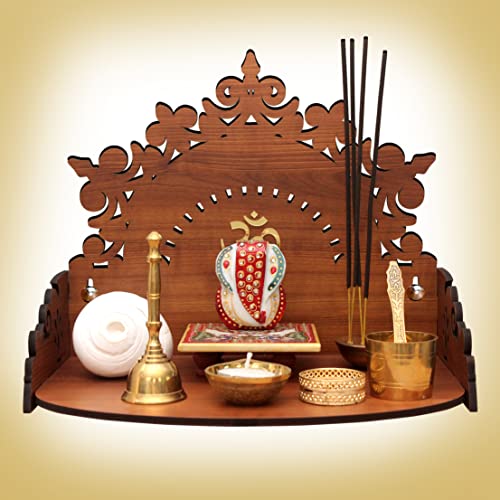 KLAVATE Vacker Pooja Mandir för hem och kontor/väggmonterad MDF trä tempel/Puja-stativ (8 mm plywood tjocklek) (Wdn Ombell) (Design 1)
