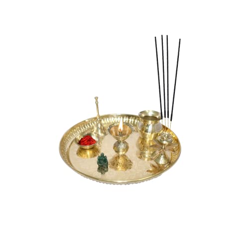 Universal Hub Pooja Thali Set med 5 st Indiska dekorativa Puja-föremål Aarti-tallrik för tempel, bröllop Heminredning Mandir Mässing Tika Thali Indiska bröllop Thali-dekoration Hinduiska gåvor