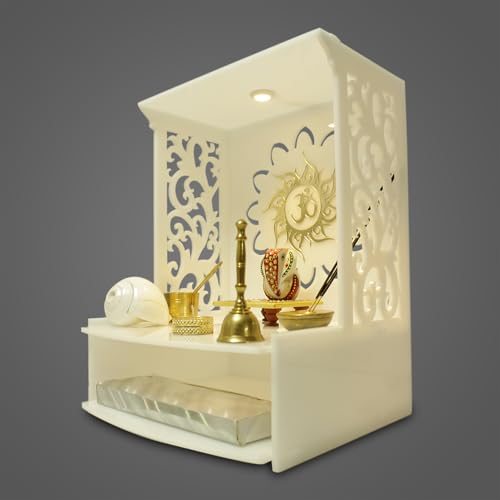 Amilav Collections Akryl Roli Vacker Pooja Mandir för hem och kontor, Puja Mandir, Puja-stativ väggmonterad med LED-spotlight ljusstorlek (H- 15,5, L- 11,5, W-11 tum)