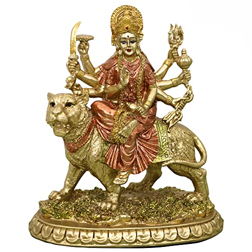 BangBangDa Hinduisk gudinna Durga-staty - Indisk Gud Durga på tigerfigurer dekor - Indien Gud Murti Idol Hem Mandir Tempel Puja Skulptur Pooja Gåvor Vara Altar Yoga Meditation Rum Diwali Gåvor