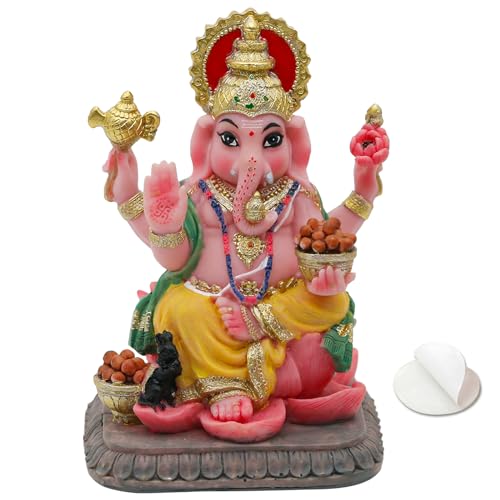alikiki Indisk gud Lord Ganesha-staty – 10 cm H flerfärgad hinduisk idol Ganesh-statyett Indien hemmakontor Mandir-tempel altare Pooja artikel Diwali Puja gåvor