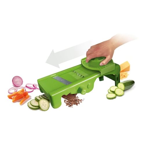 Supmakin Säker mandolin, grönsaksskärare, justerbar grönsakshackare, multifunktionell, potatisskivare med 4 lägen, tärningar, juliennestavar, kök (grön)