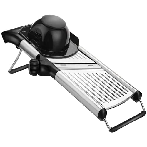 Professionell mandolin grönsaksskärare - grönsaksskärare med handskydd, gör tjocka skivor 1 till 9 mm, justerbar i rostfritt stål manuell grönsaksskärare för frukt och grönsaker
