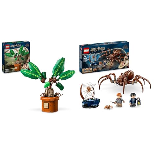 LEGO Harry Potter Mandrake Plant Toy Figure and Pot + Aragog in the Forbidden Forest Set Magical Set, Wizarding World Gift Idea for Girls, Boys and Fans 76433 + 76434