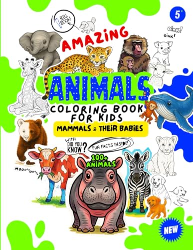 Animals Coloring Book for Kids : Mammals & Their Babies with Did You Know? Fun Facts: 100+ Animals realistic animals like Dogs, Lions, Mandrill, Lama, Alpaca and more. Just Amazing Coloring book