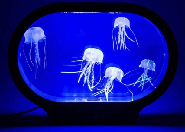 Autbye Elektrisk Manet Lampa, Tank Bord Med Färgskiftande Akvarium, Heminredning och Rummets Stämning Fäst Med 8 Gratis Lysande Stenar (Blå)