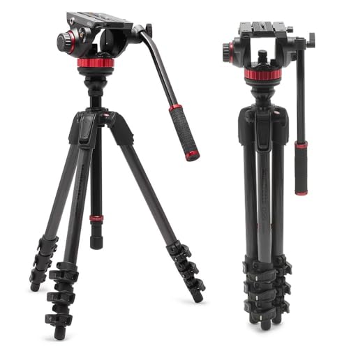 Manfrotto 055 videostativ med 502 video vätskehuvud, kolfiber, professionellt tungt stativsystem, med nivelleringskolonn, spaklås, kamerastativstativ, för DSLR/spegelfria kameror, videokameror