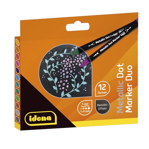 Idena 10855 – Dot Marker med dubbel spets, 12 filtpennor i metalliska färger, vattentäta pennor för många underlag