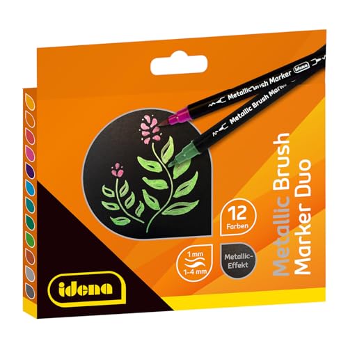 Idena 10856 – pensel markeringspenna med dubbel spets, 12 filtpennor i metalliska färger, vattentäta pennor för många underlag