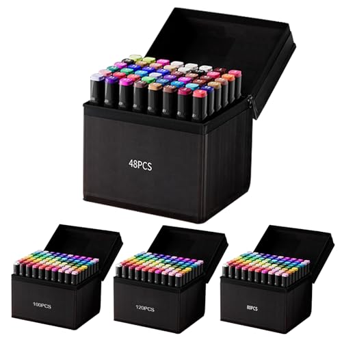 80/120 färger markörpennor, tuschpennor set, konst markörer, graffitipennor med exklusiv app, 2S snabbtorkande dubbelspets alkohol markörer med dubbla huvuden design manga pennor för ritning (80)