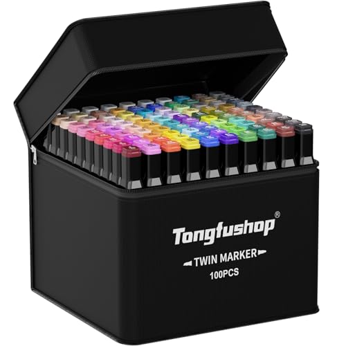 Tongfushop 100 färger alkohol märkpennor-set, dubbel spets alkoholmärkpenna 2S sekunder snabbtorkande permanenta pennor för ritning, manga, skissning, illustration – perfekt för konstnärer, designers