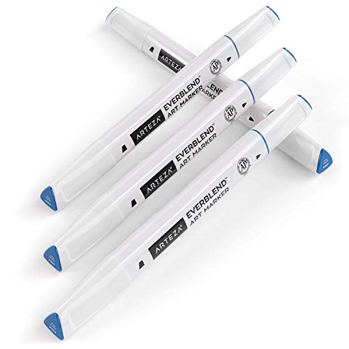 ARTEZA 4 EverBlend alkoholpennor med dubbla spetsar | Egeiska blå A264 | Målarpenna fin och fasad spets | Manga-pennor | målarpennor vuxna och barn