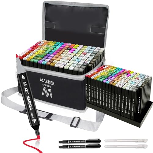 Banral 80 färger markörer – filtpennor set – permanent markörpenna med dubbelspets pennor snabbtorkande filtpennor med bärväska förvaringsbas för nybörjare, markera, skissa, rita, manga (168 färger)