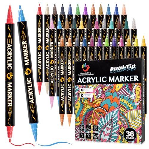 FINGERTIP STORY 36 färger akrylpennor för stenar vattentäta pennor stenar måla vattentäta för påsk hantverk canvas påskägg trä skola manga konstnär bröllop