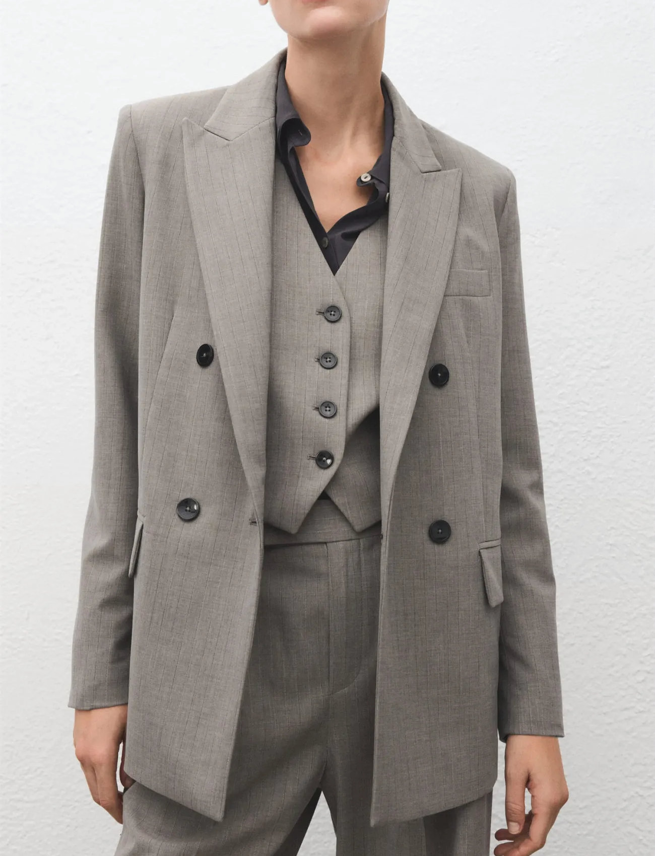 Mango Double-Breasted Wool Blend Blazer - Grey - S