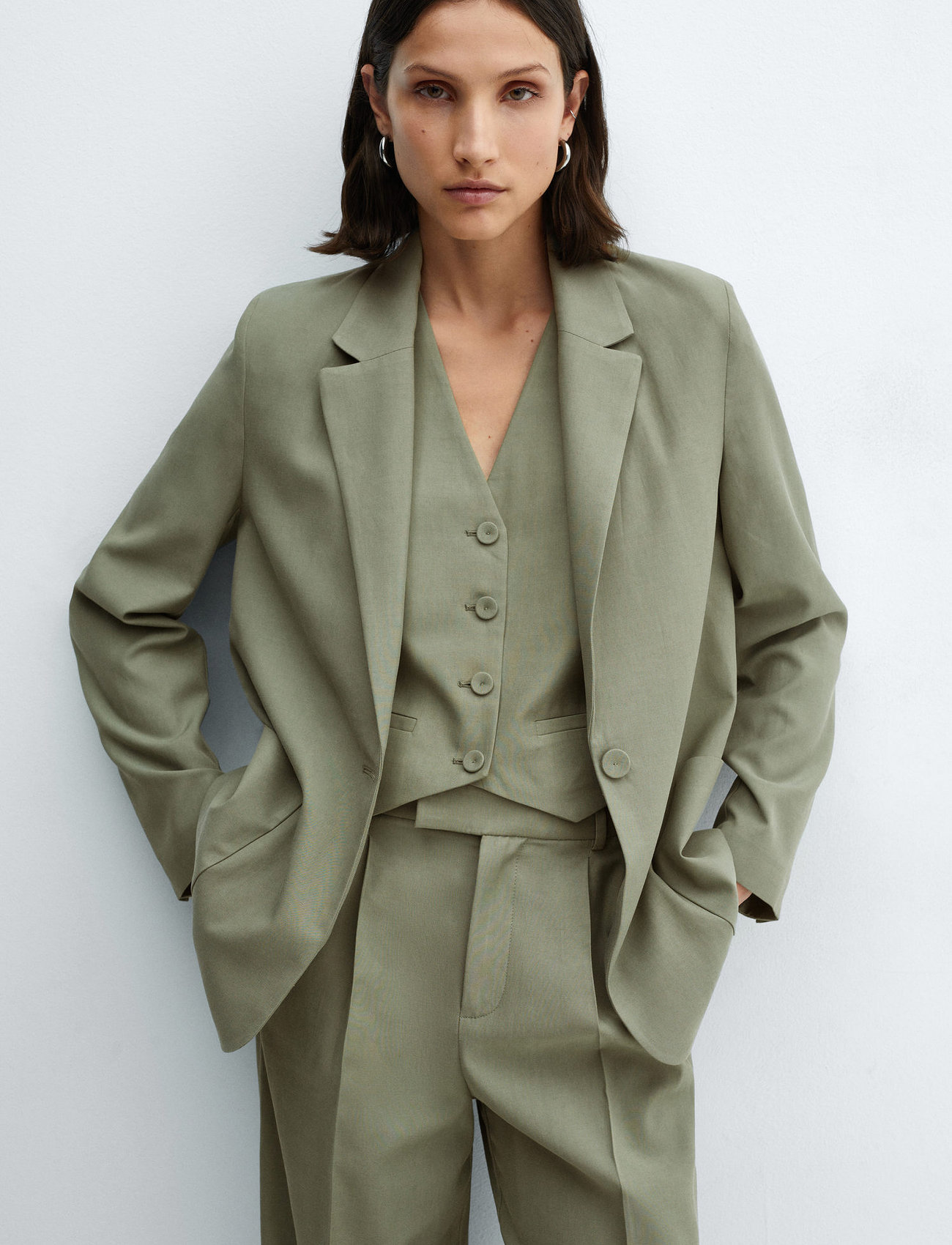 Mango Pockets Suit Blazer - Green - XS