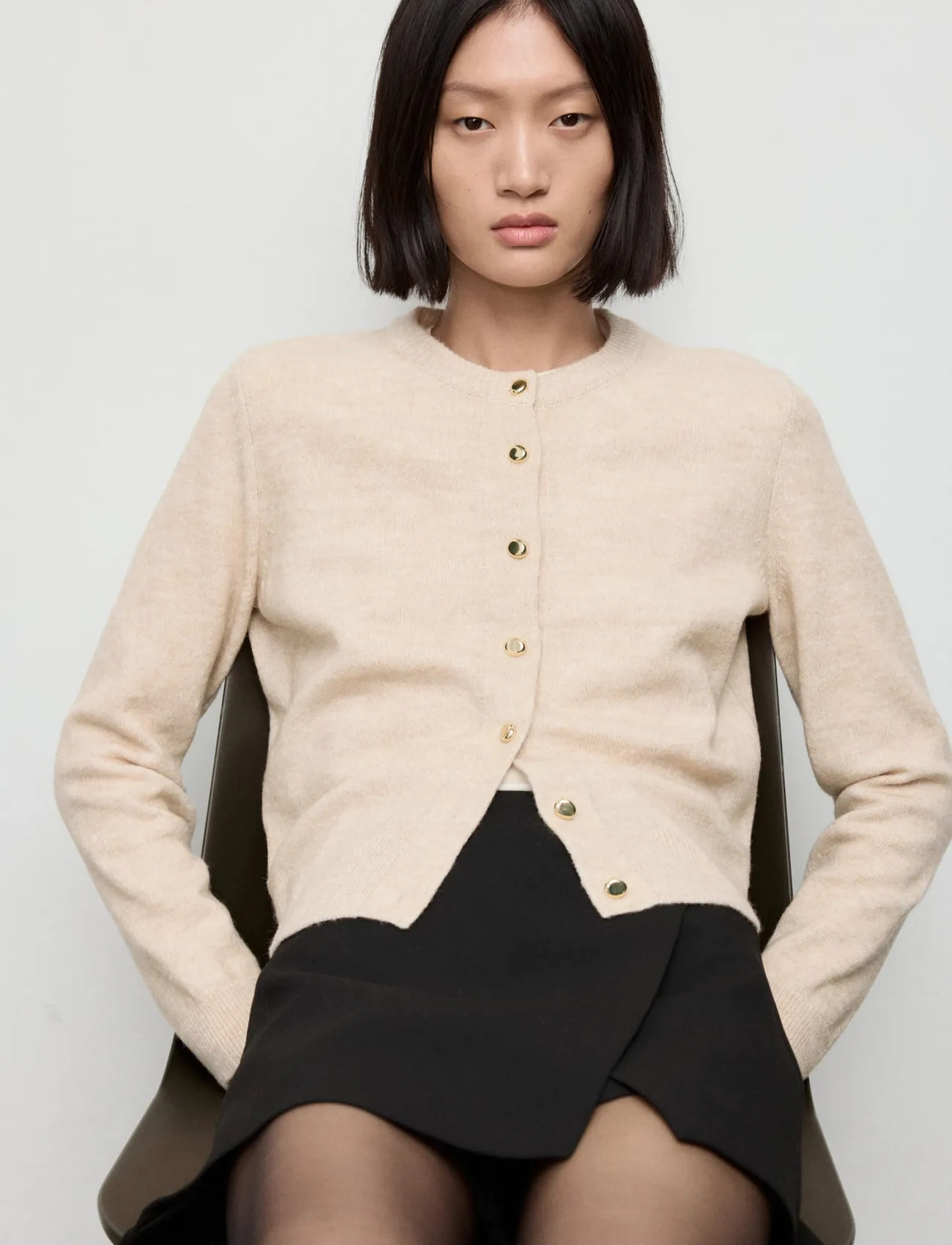 Mango Chunky-Knit Cardigan With Jewel Buttons - Beige - S