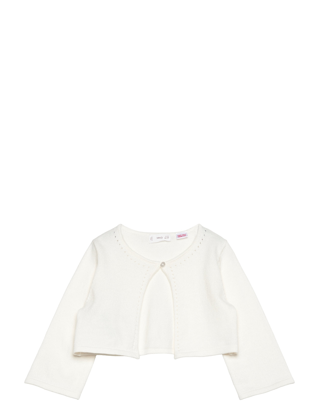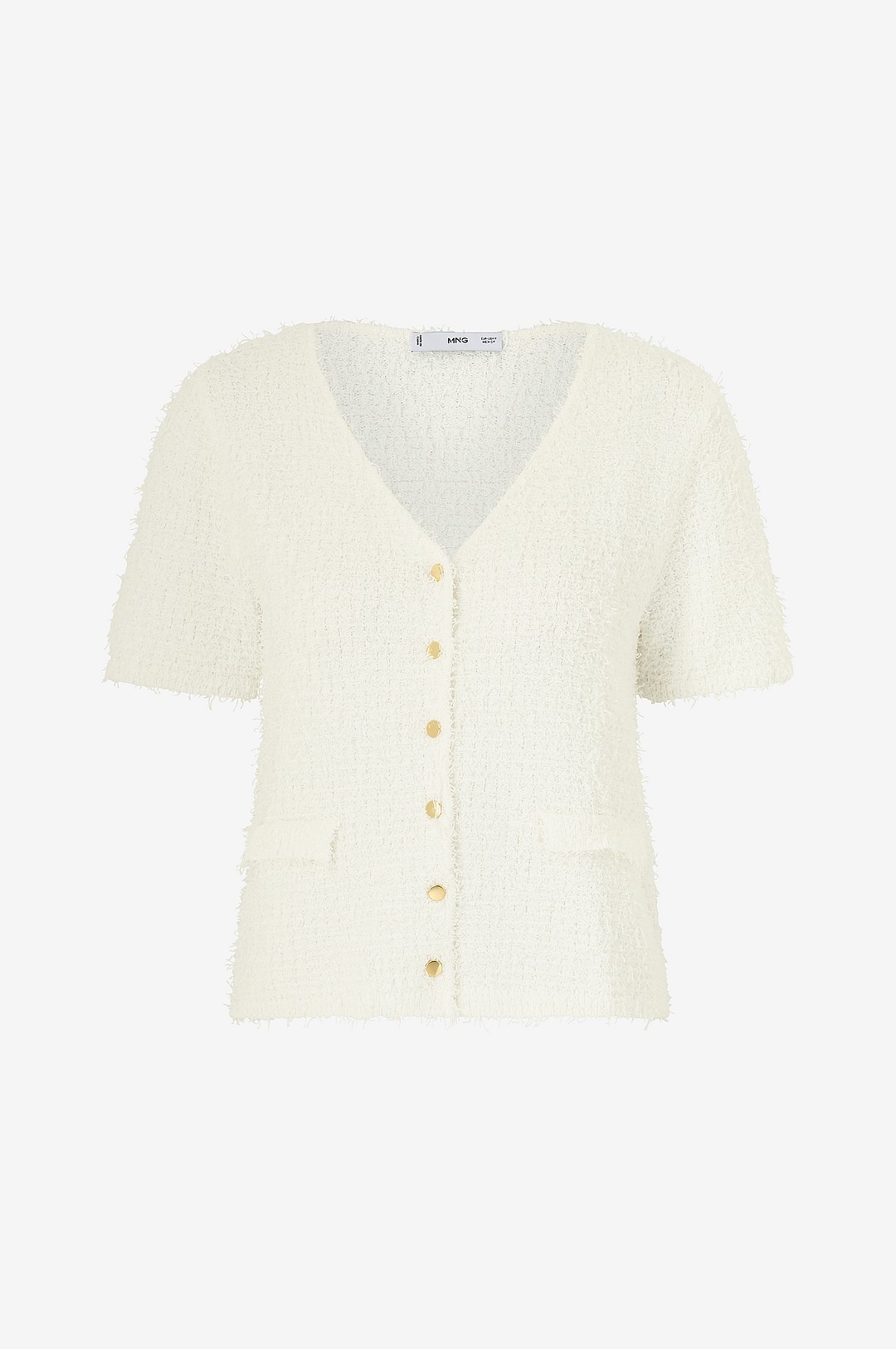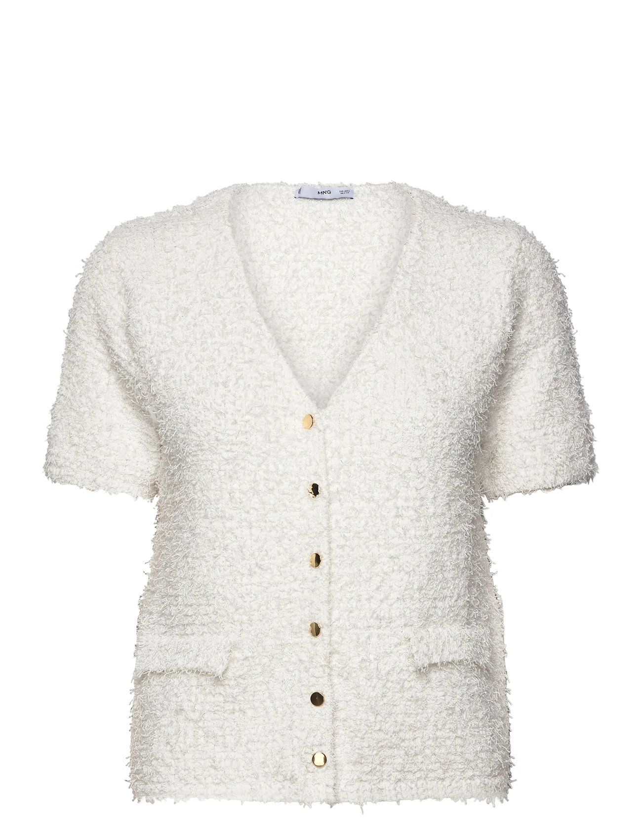 Mango Short-Sleeved Bouclé Cardigan Vit