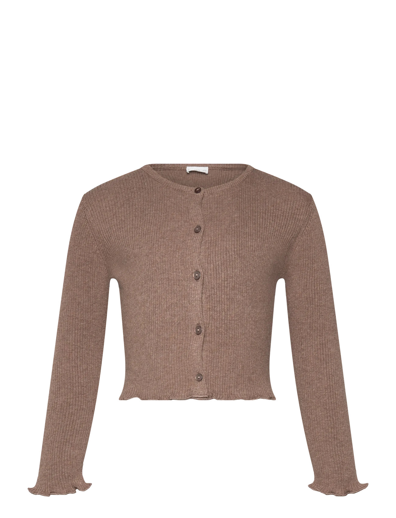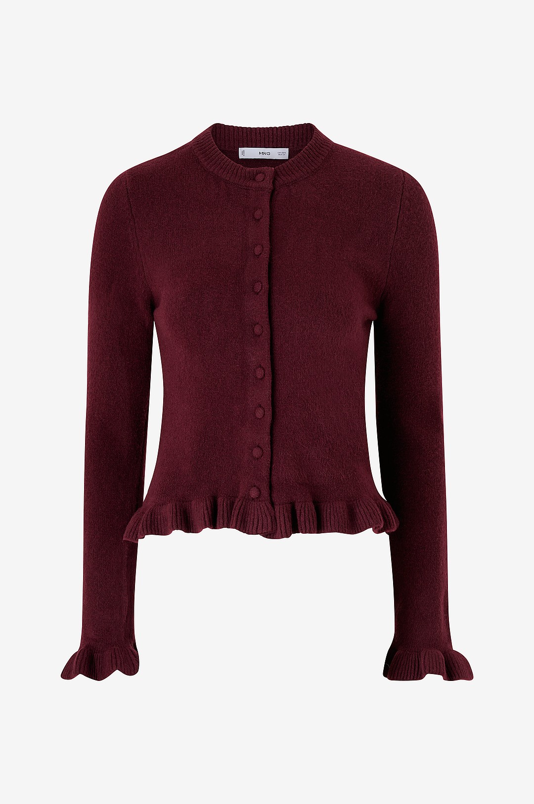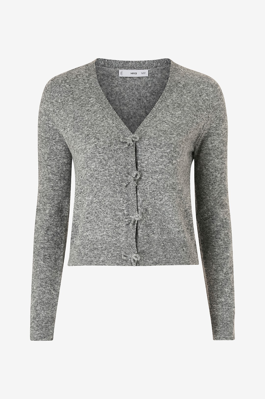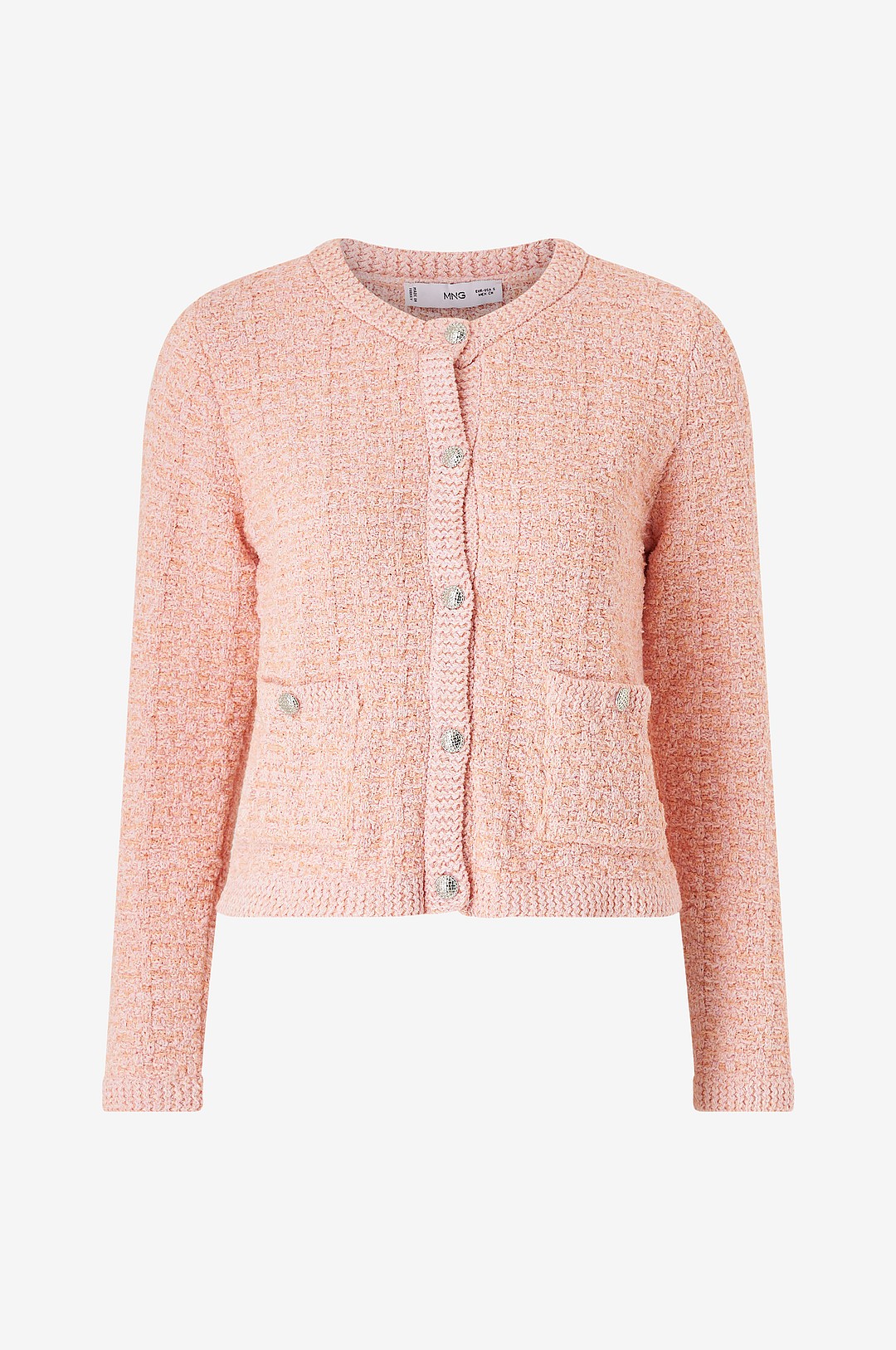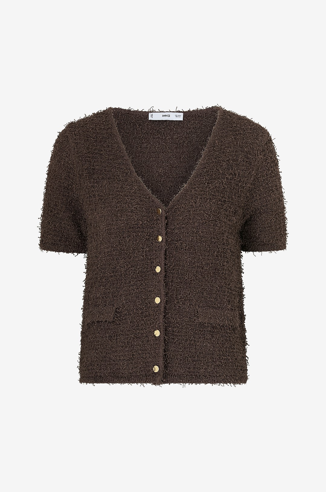 Mango Short-Sleeved Bouclé Cardigan Brun