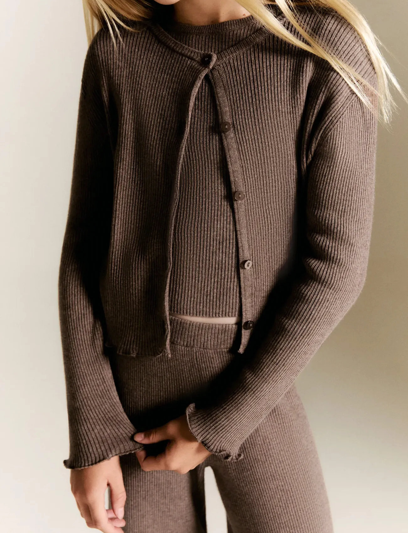 Mango Ribbed Knitted Cardigan - Brown - XS