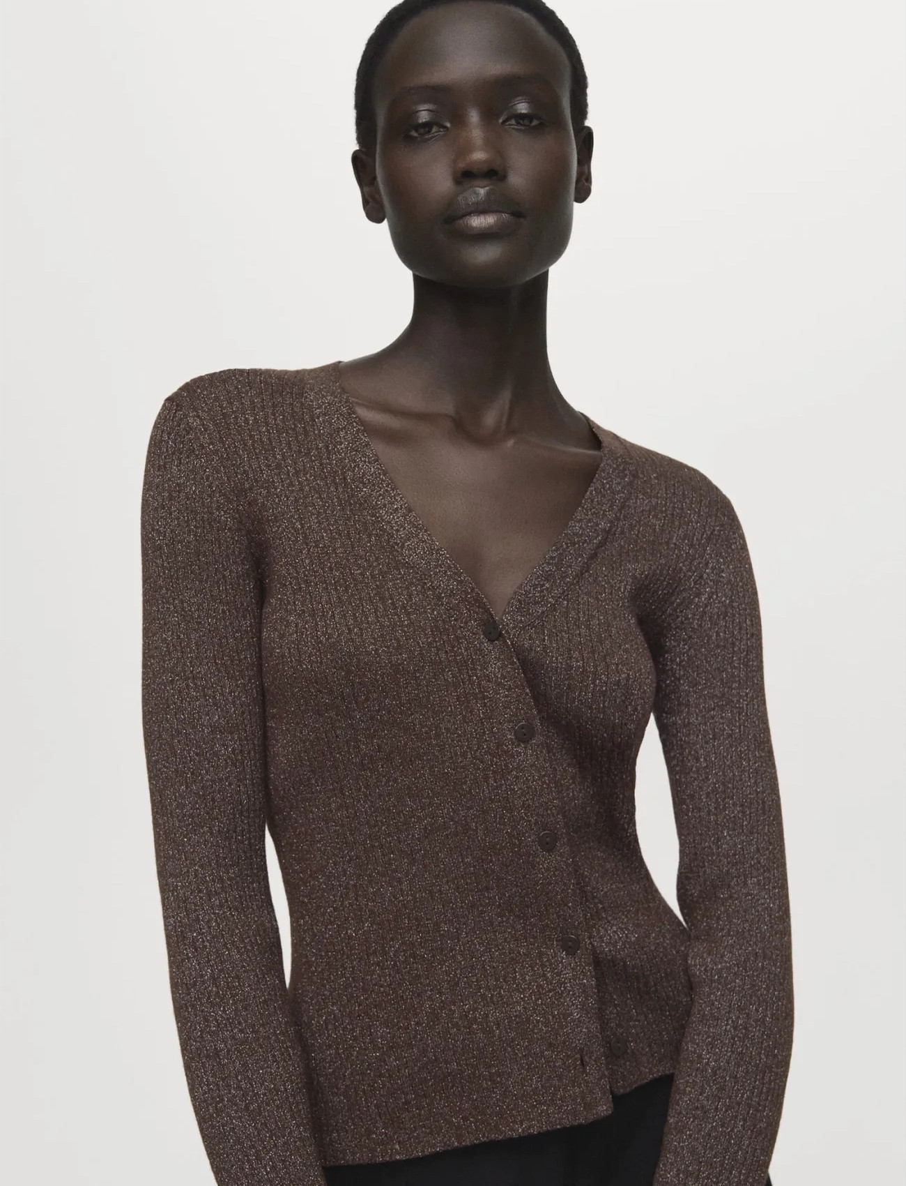 Mango Ribbed Knitted Cardigan - Brown - S