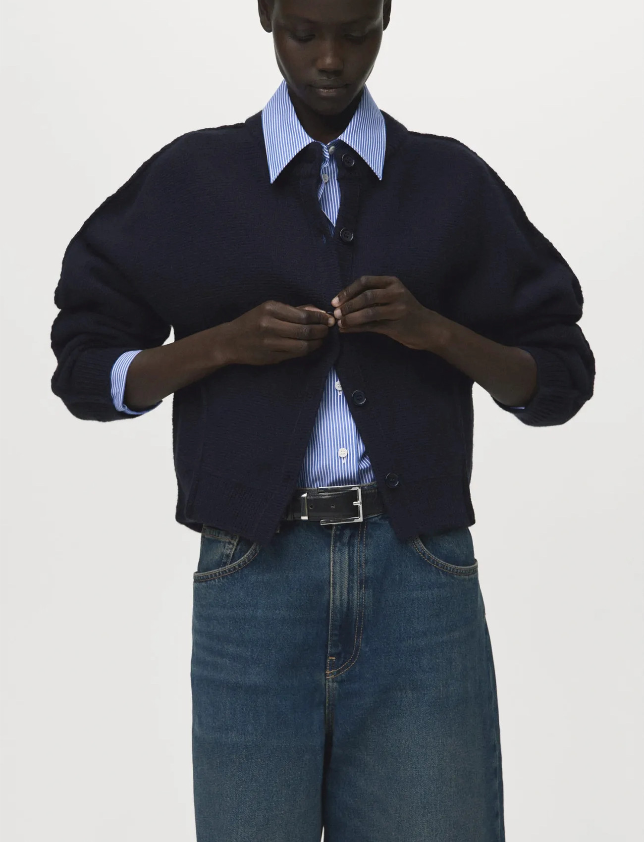 Mango Straight-Fit Cardigan With Buttons - Navy - S