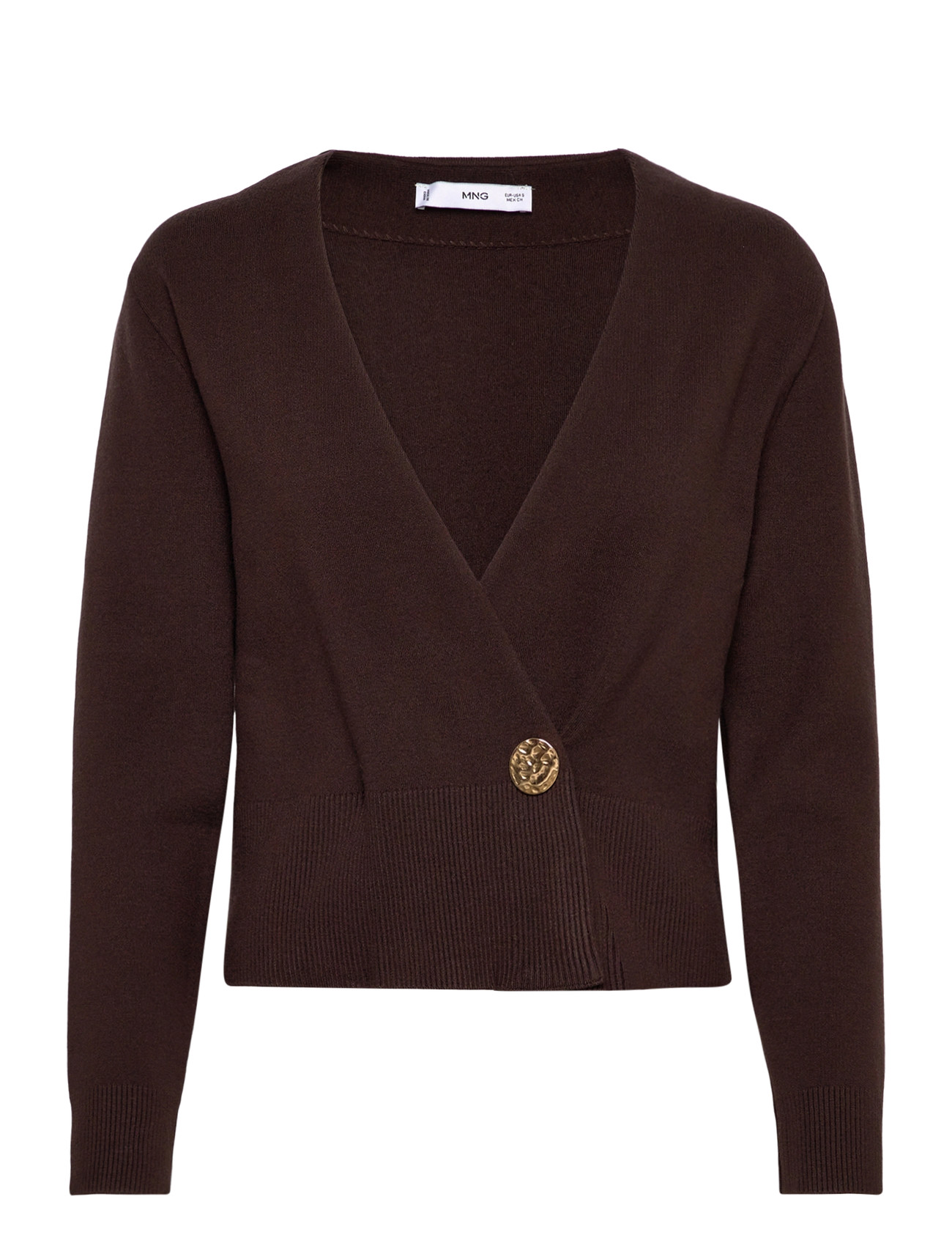 Mango Cross-Over Cardigan With Jewel Button - Brown - XL