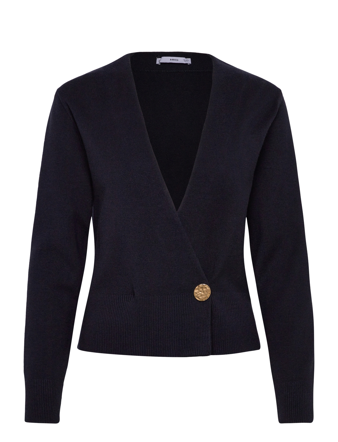 Mango Cross-Over Cardigan With Jewel Button - Navy - S
