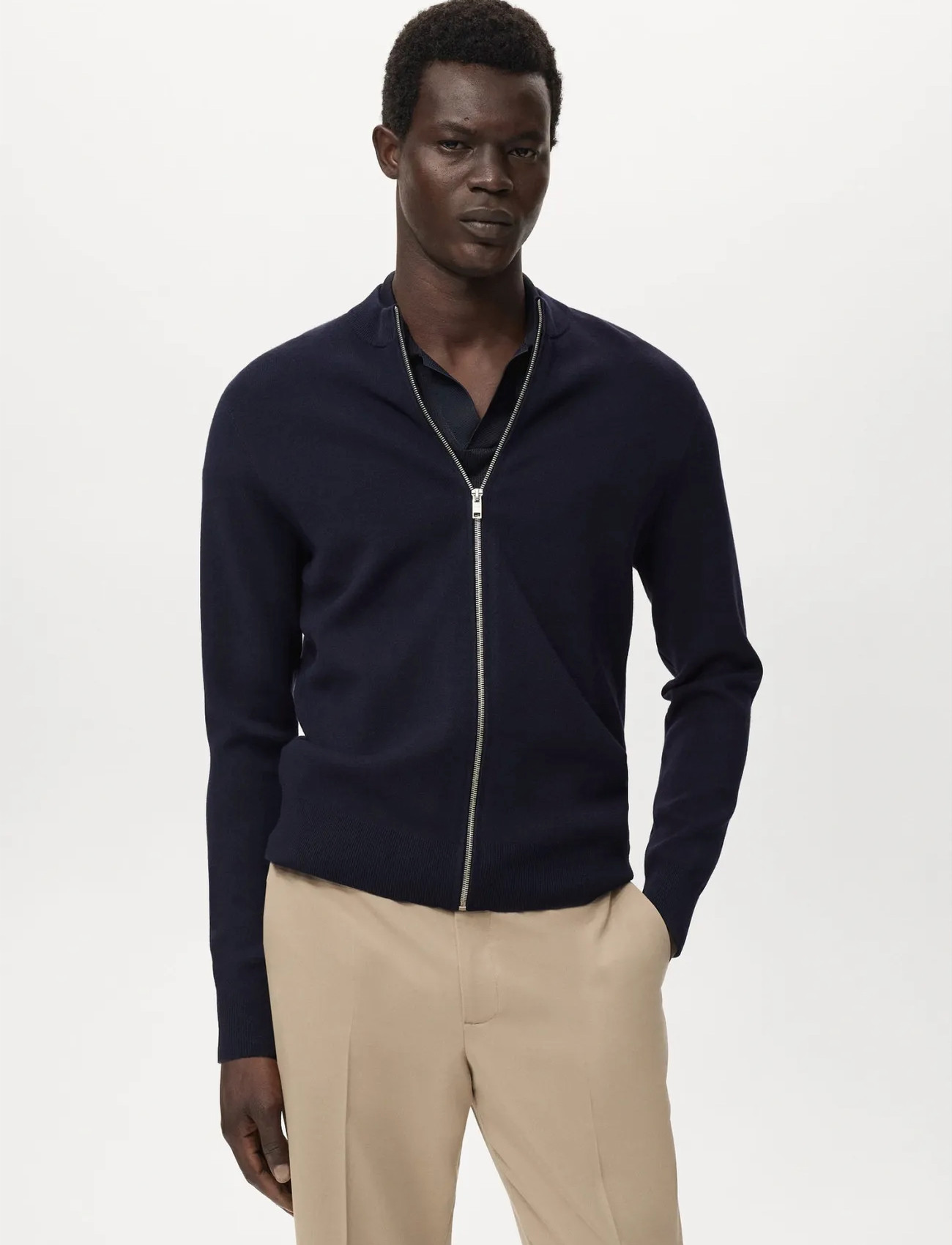 Mango Zipped Knit Cardigan - Navy - XXL