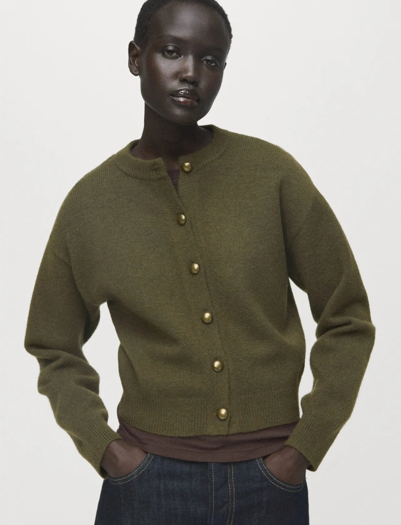 Mango Chunky-Knit Cardigan With Buttons - Khaki green - XS