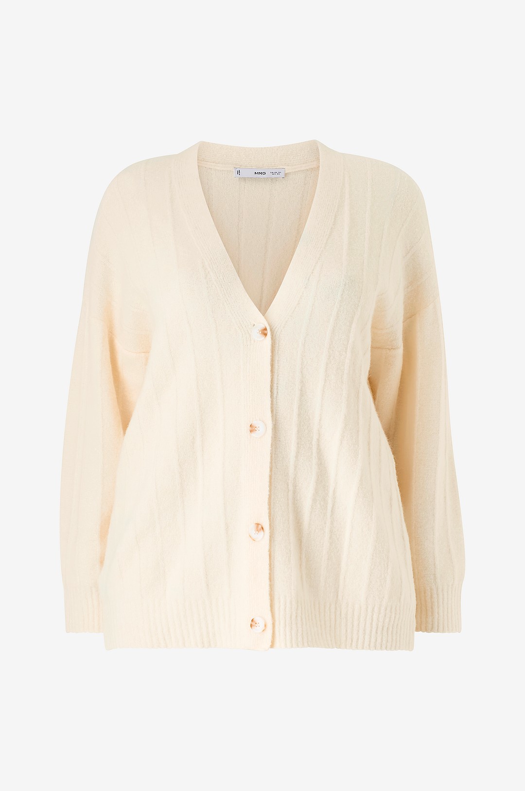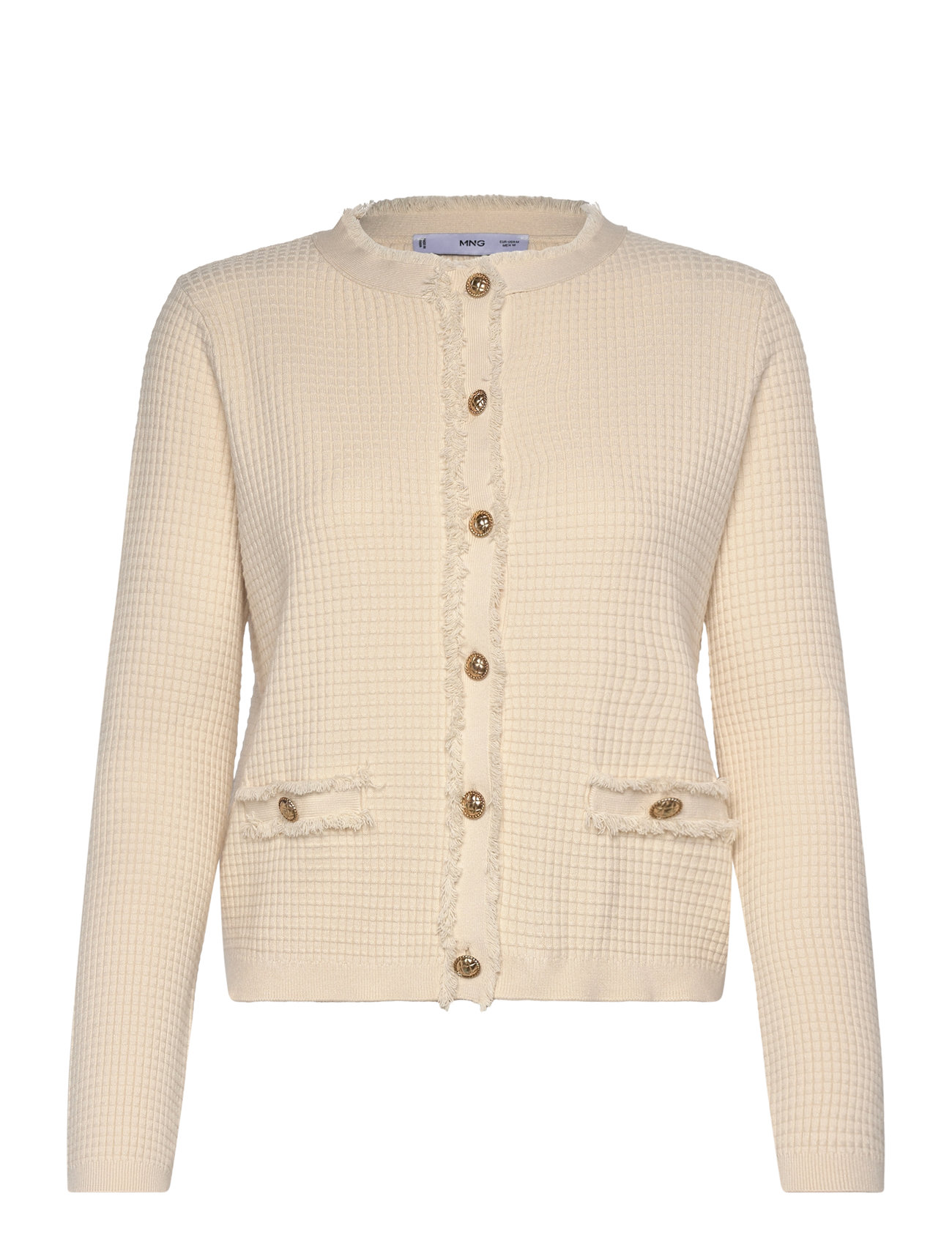 Mango Knitted Cardigan With Frayed Ends Kräm