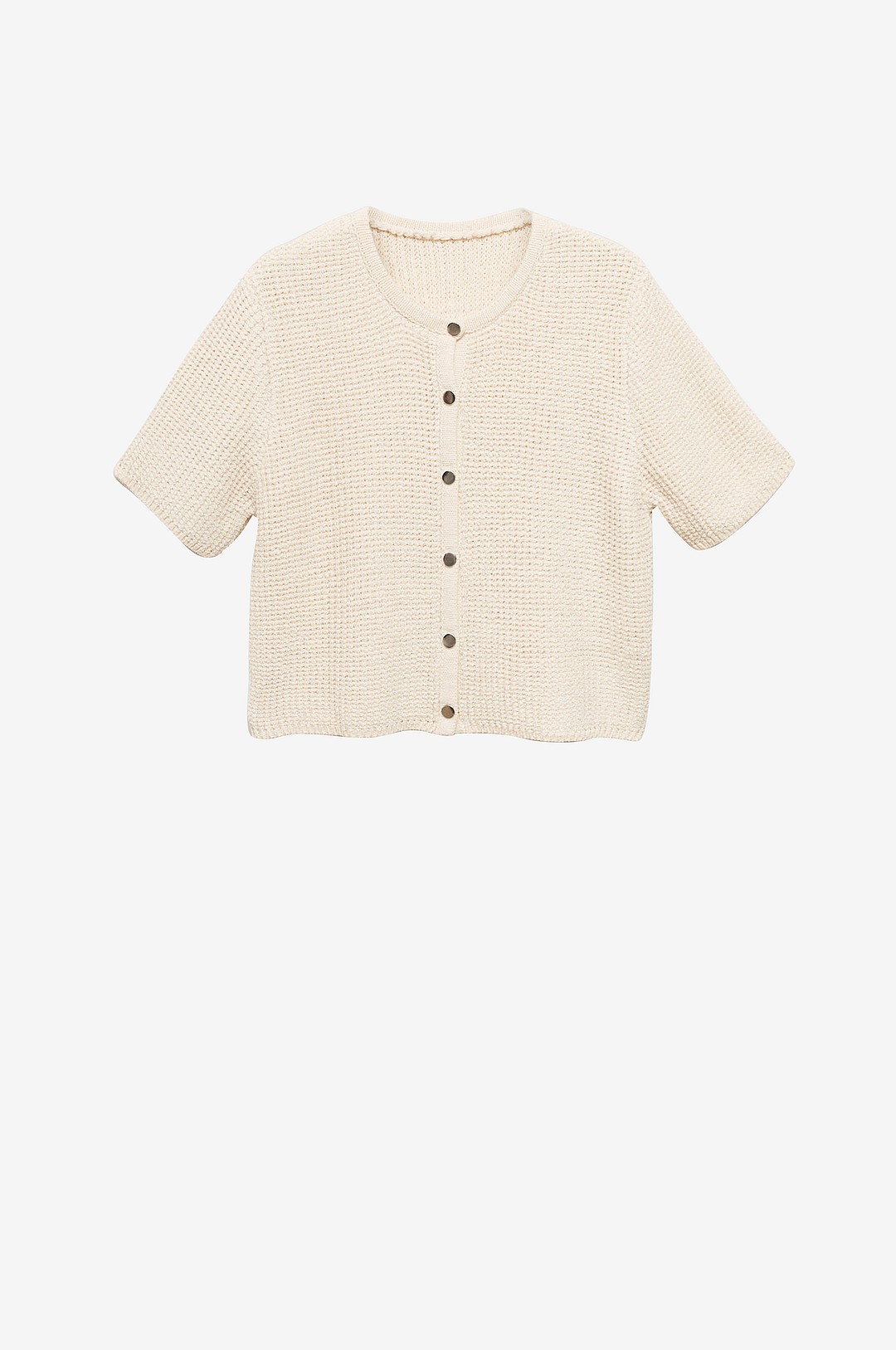 Short-Sleeved Cardigan With Shirt Collar Beige Mango