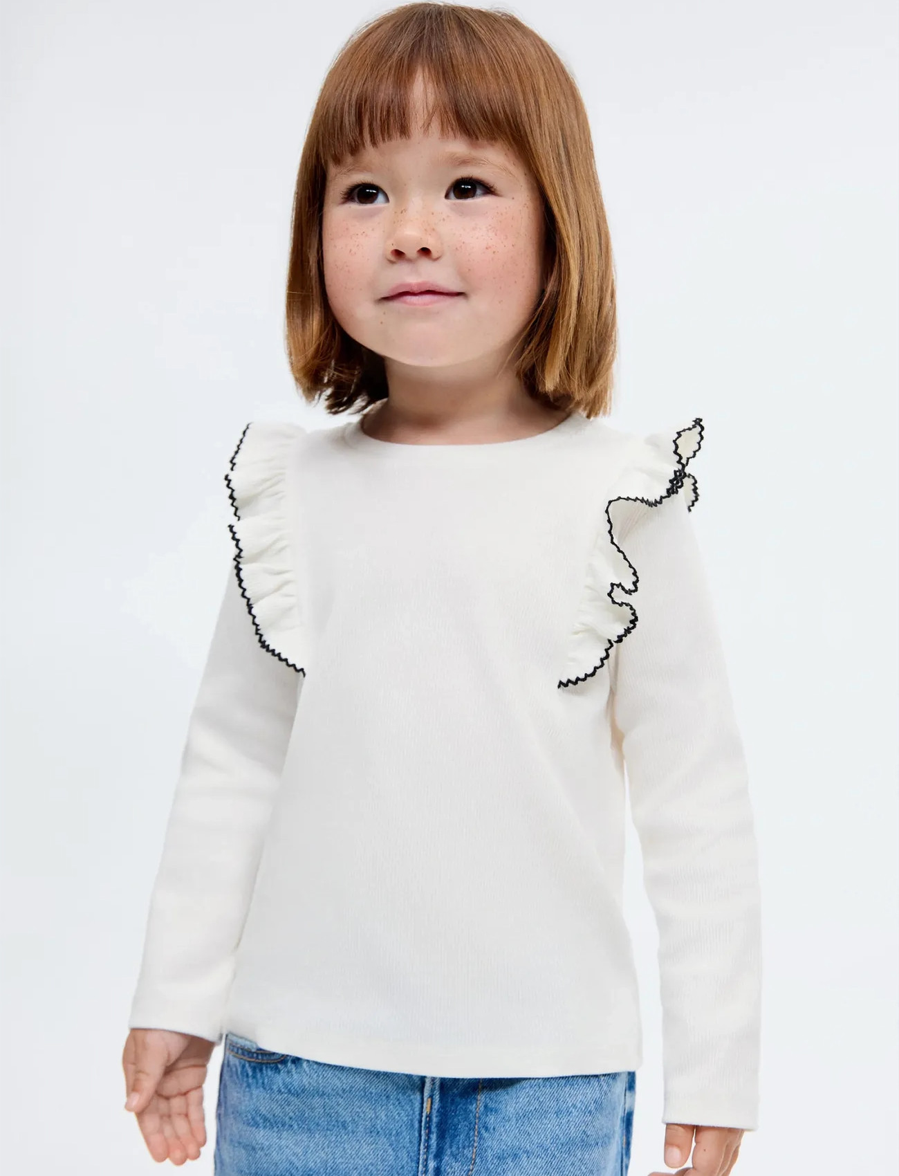 Mango Long-Sleeved T-Shirt With Ruffles - Cream - 5-6