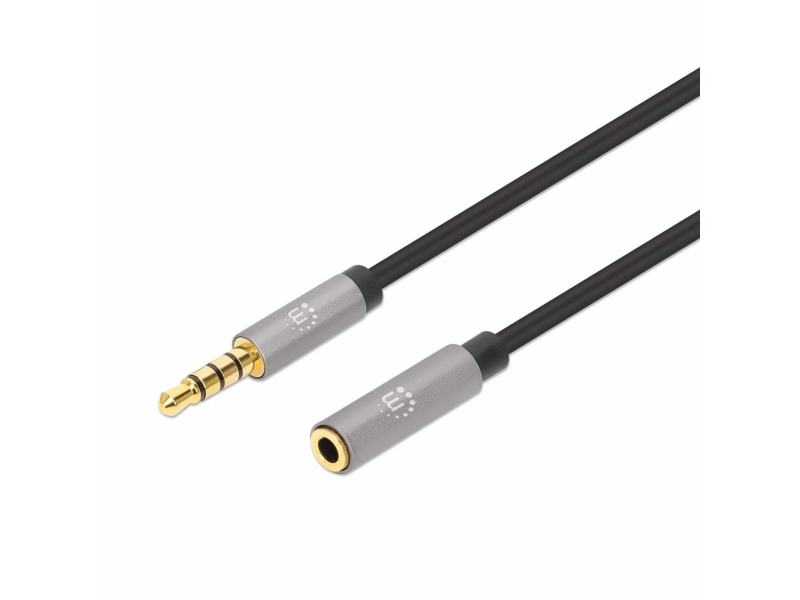 Manhattan Stereo Audio 3.5mm Extension Cable, 3m, Male/Female, Slim Design, Black/Silver, Premium with 24 karat gold plated contacts and pure oxygen-free copper (OFC) wire, Lifetime Warranty, Polybag - ljudförlängningskabel - 3 m