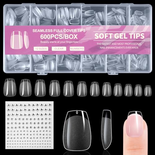 BUTBU 600 st amerikansk nagelkapsel, 12 storlekar falska naglar, nagelkapslar, gel, full täckning för nagelteologer, nybörjare manikyr och gör-det-själv-nagelkonst hemma