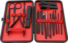 DREI SCHWERTER Germany Nagelvårdsset "Cinisello" 16 delar. Manikyr pedikyr resa etui set nagelset nagelnecessär, stålinstrument märkeskvalitet, manikyrset konst läder gåva (0071)
