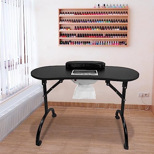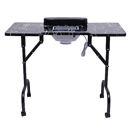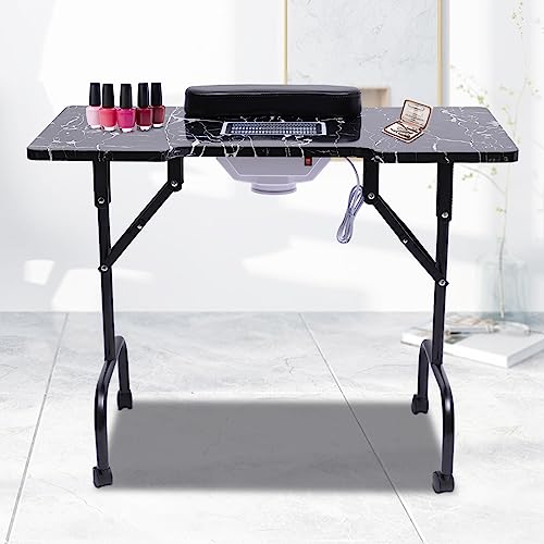 HENGMEI Nagelbord Med Sug, Mobilt Manikyrbord Med Inbyggd Dammutsugning Nagelbord Hopfällbart Nagelsalongsbord Med Hjul Och Handledskudde, Svart